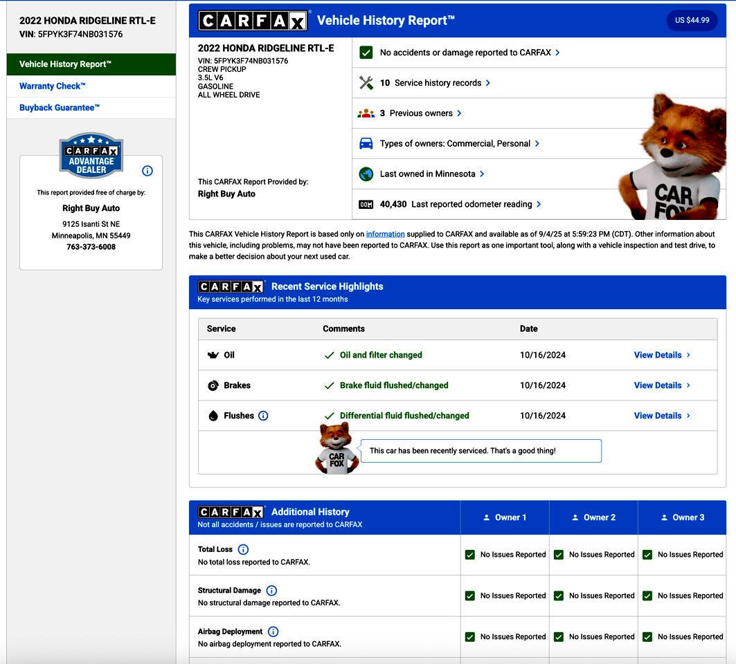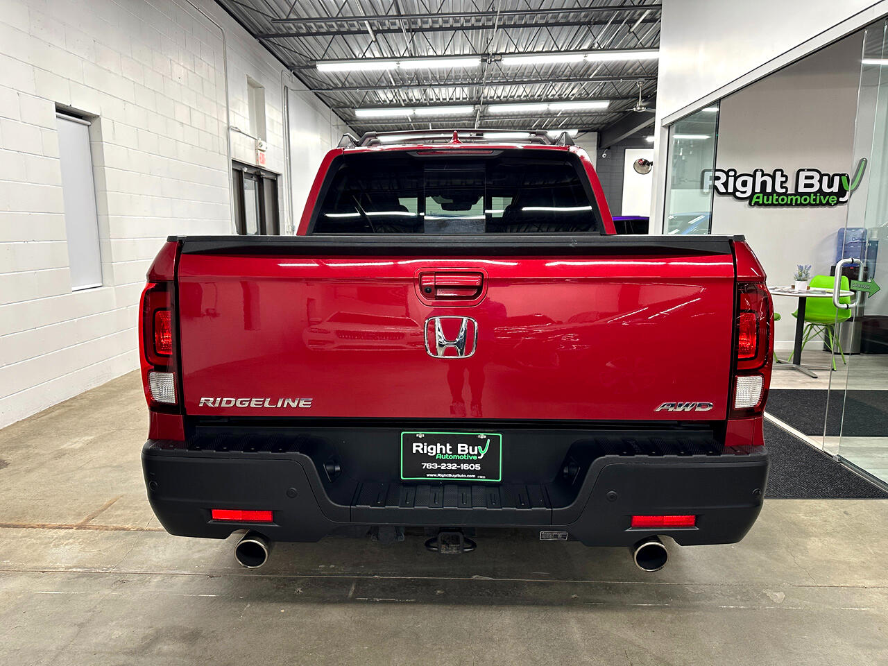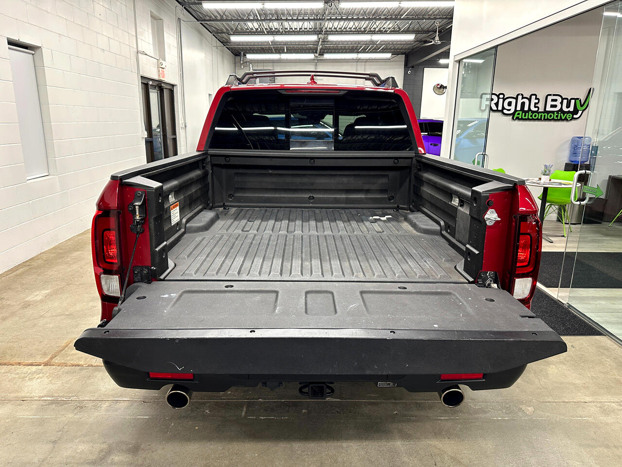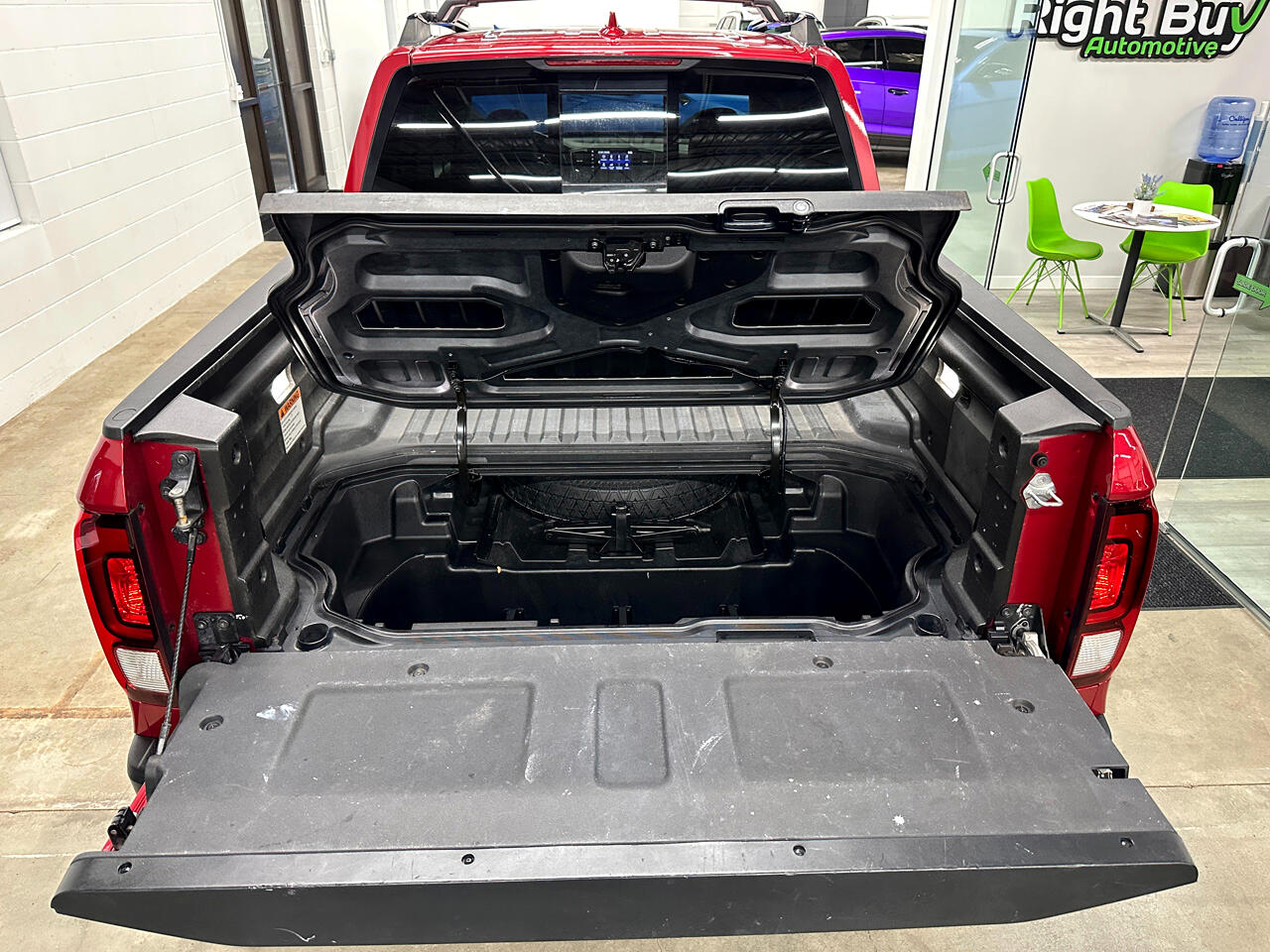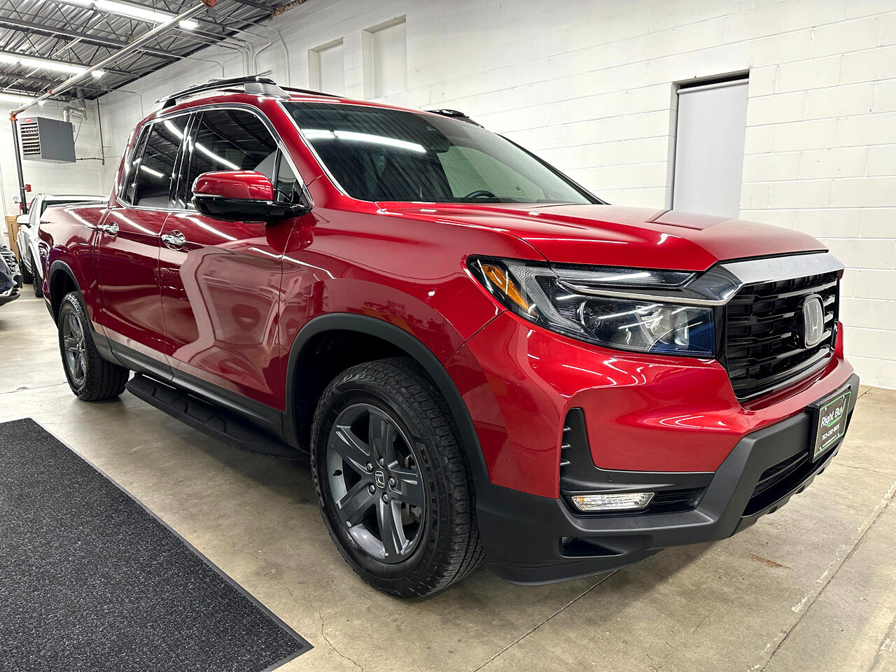 Dealer maintained and serviced. Remaining factory warranty from Honda. Inspection performed. Original MSRP $46,035. This 2022 Honda Ridgeline RTL-E features a 3.5L V6 Engine Producing 280HP/262TQ. 9-Speed Automatic Transmission. AWD System. Radiant Red Metallic II Exterior. Black Leather Interior. Function Package. Honda Satellite-Linked Navigation System. Honda Sensing Safety Suite. Adaptive Cruise Control. Collision Mitigation Braking System. Road Departure Mitigation System. Forward Collision Warning. Lane Departure Warning. Lane Keeping Assist. Blind Spot Information System. Cross Traffic Monitor. Tri-Zone Automatic Climate Control. Power Moonroof. Heated Front Seats. Heated Leather-Wrapped Steering Wheel. Power Driver & Passenger Seats. Apple CarPlay & Android Auto. Wireless Phone Charger. 8” Display Audio Touchscreen. Premium 540-Watt Audio System with 8 Speakers. SiriusXM. Bluetooth Audio & Phone. Power Sliding Rear Window. Auto-Dimming Rearview Mirror. Smart Entry with Push Button Start. Remote Engine Start. LED Headlights. Fog Lights. 18” Alloy Wheels. Bed Liner. Truck Bed In-Bed Trunk. Tow Package. Roof Rails. Cross Bars. Cargo Accessories. Every Vehicle at Right Buy comes with a full inspection report. CarFax vehicle history report. Affordable extended coverage options and low-rate financing options. Set an appointment to view the vehicle in our heated indoor showroom. PRIME PROTECT EXCLUSIONARY COVERAGE AVAILABLE 1 YEARS 12K MILES FOR $2,393 OR 6 YEARS 100K MILES FOR $2,911.